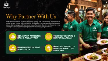 Menjadi partner terpercaya untuk catering harian, kantor, pernikahan, dan berbagai acara spesial.
