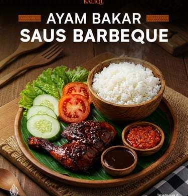 Ayam Goreng / Bakar 1/4 diracik bumbu khas Bali autentik + Salada + Lalapan Dn Singkong + Mentimun + Tomat + Sambal Ijo Bali + Sambal Merah Bali